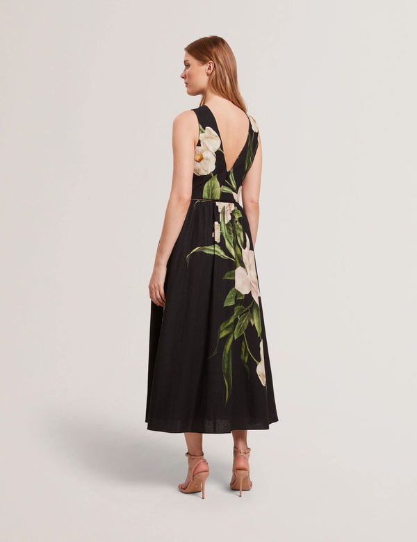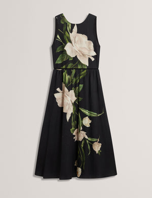 SLEEVELESS FIT AND FLARE MAXI DRESS