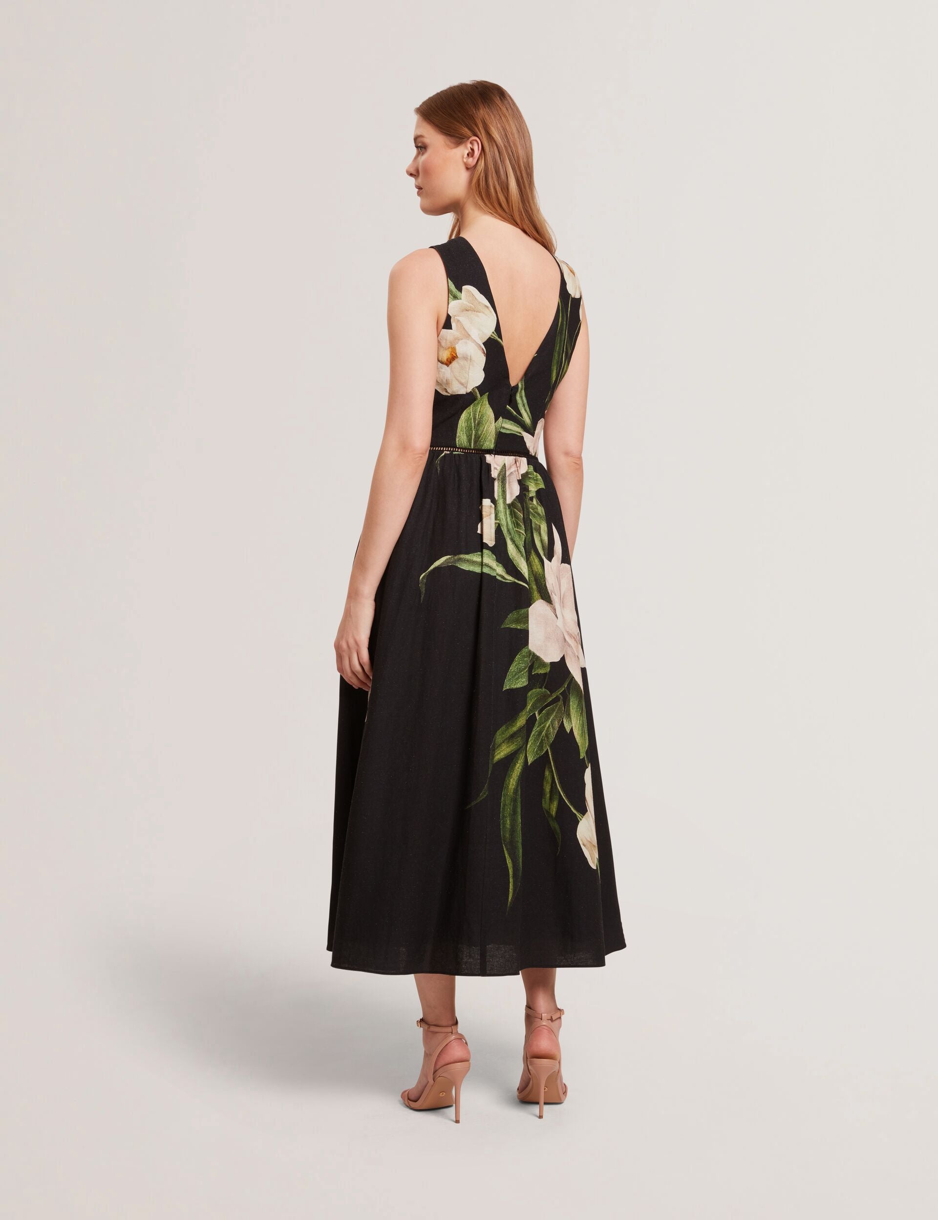 Flow into effortless elegance with the Sleeveless Fit and Flare Maxi Dress, a flattering silhouette that gracefully moves with you, perfect for making a statement at any event.