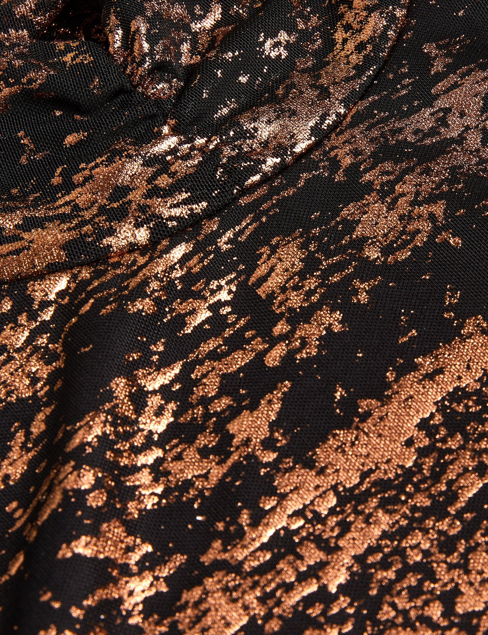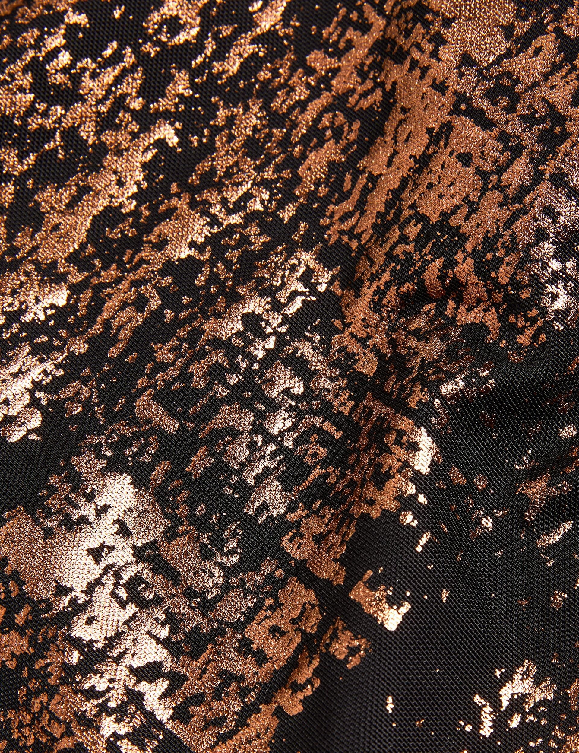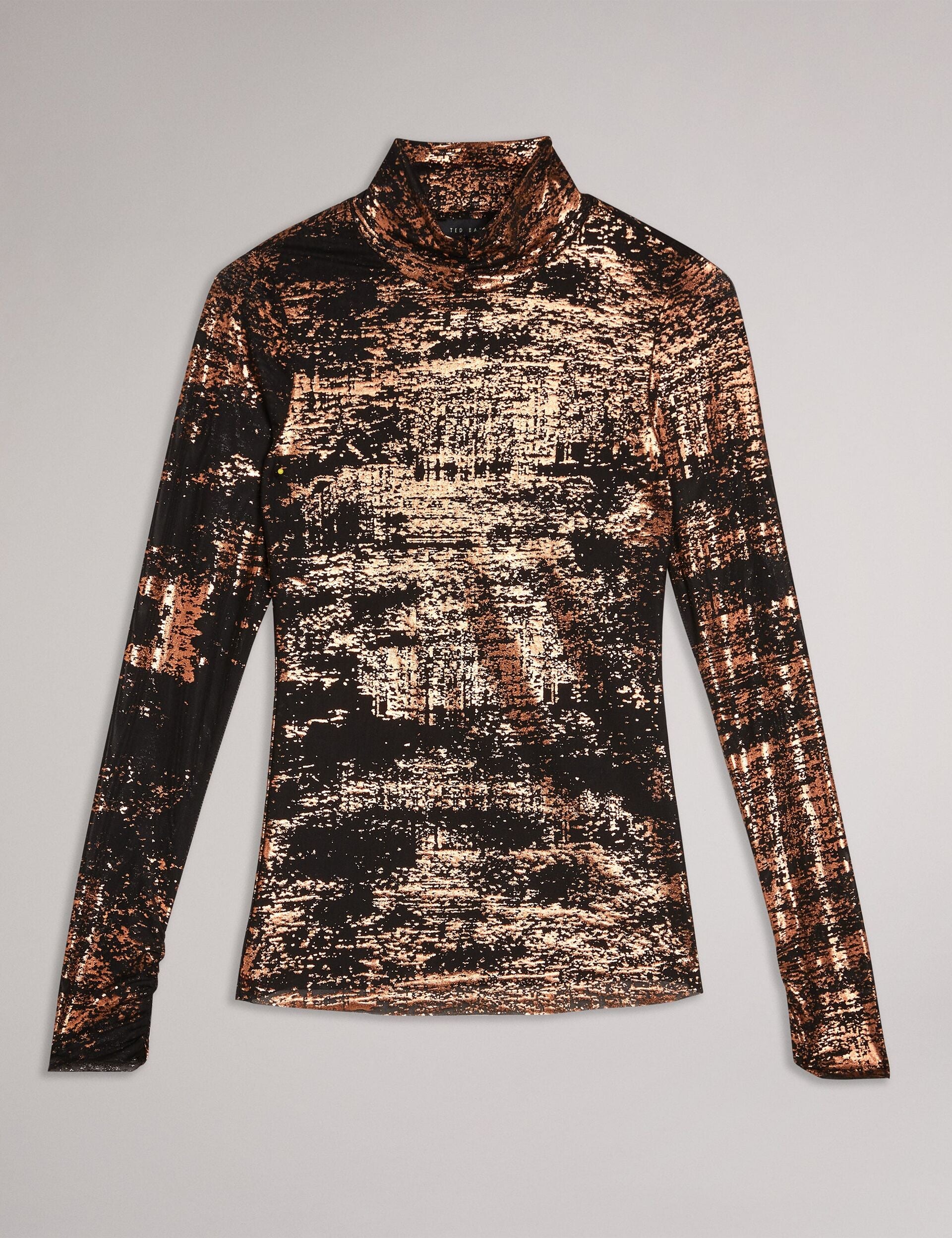 Planning a night out with the girls? Then give SOFIY an invite. Featuring a metallic foil print, this top gets the party started with its irresistible shimmer. A high neckline and long sleeves bring elegant coverage, whilst the sheer finish of its mesh fabric reveals just the right amount.
