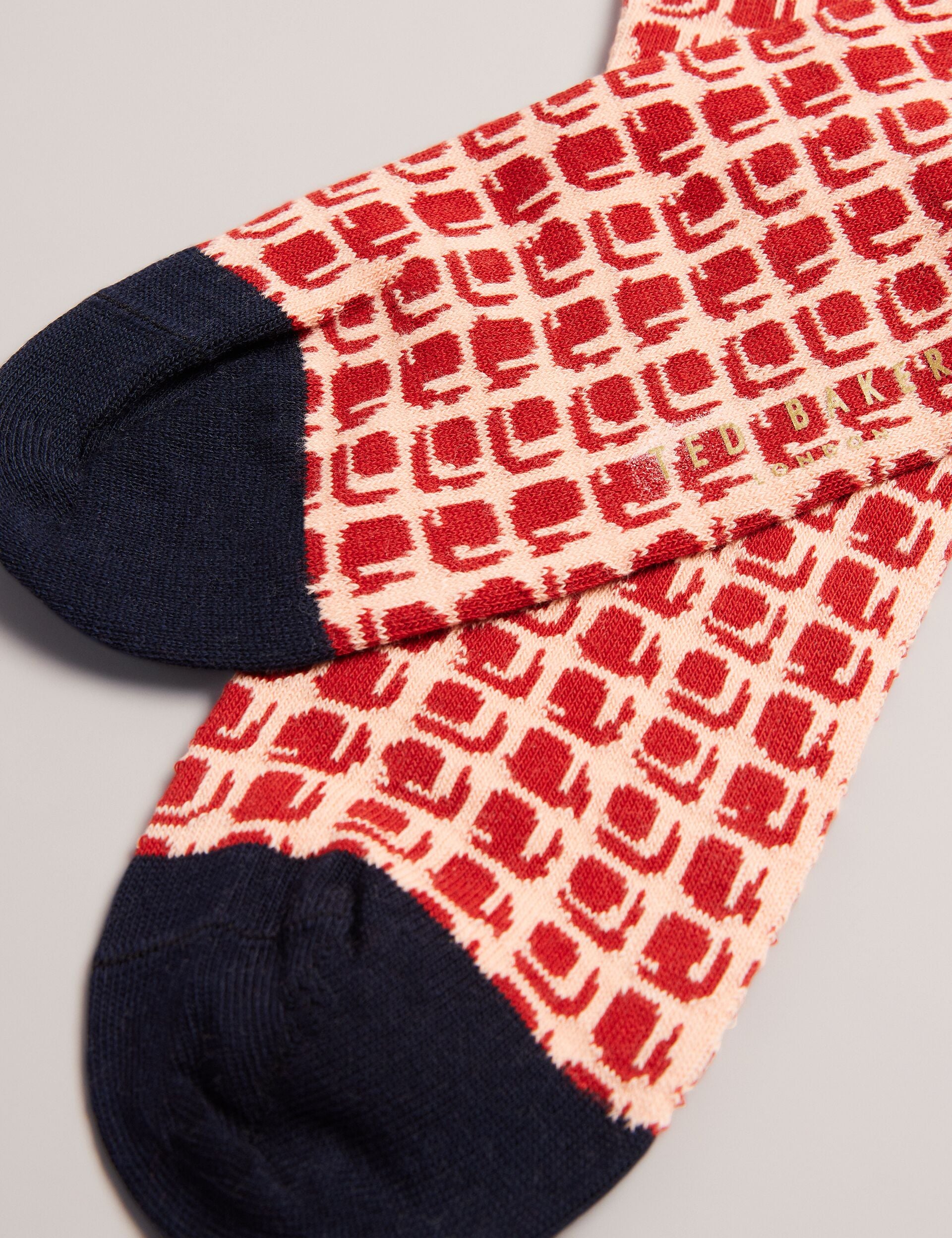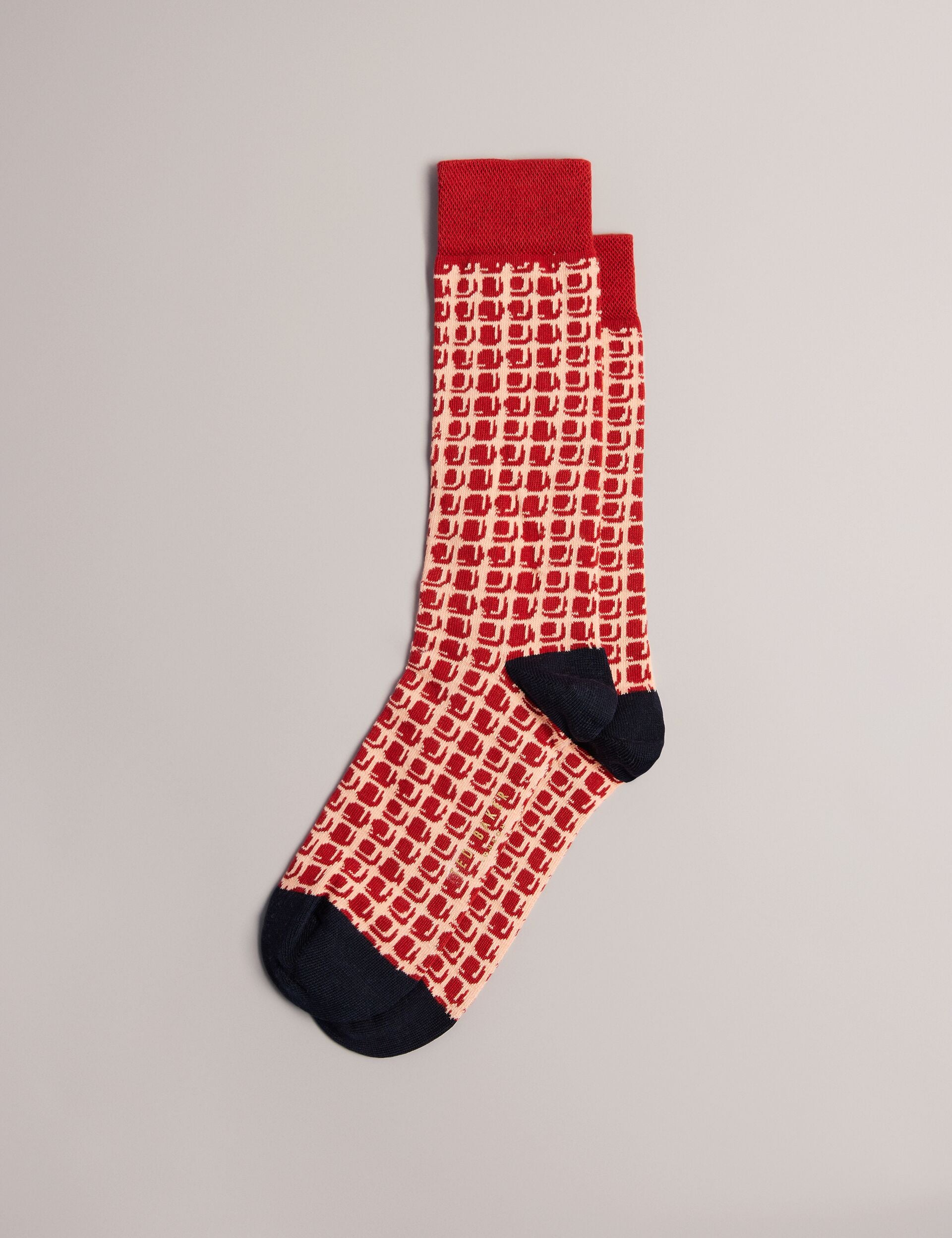 Elevate your sock drawer with this statement piece that transforms a wardrobe essential into a conversation starter. The distinctive geometric pattern brings contemporary sophistication to your everyday attire, while the premium knit construction ensures all-day comfort. Perfect for adding a dash of personality beneath tailored trousers or smart-casual chinos.