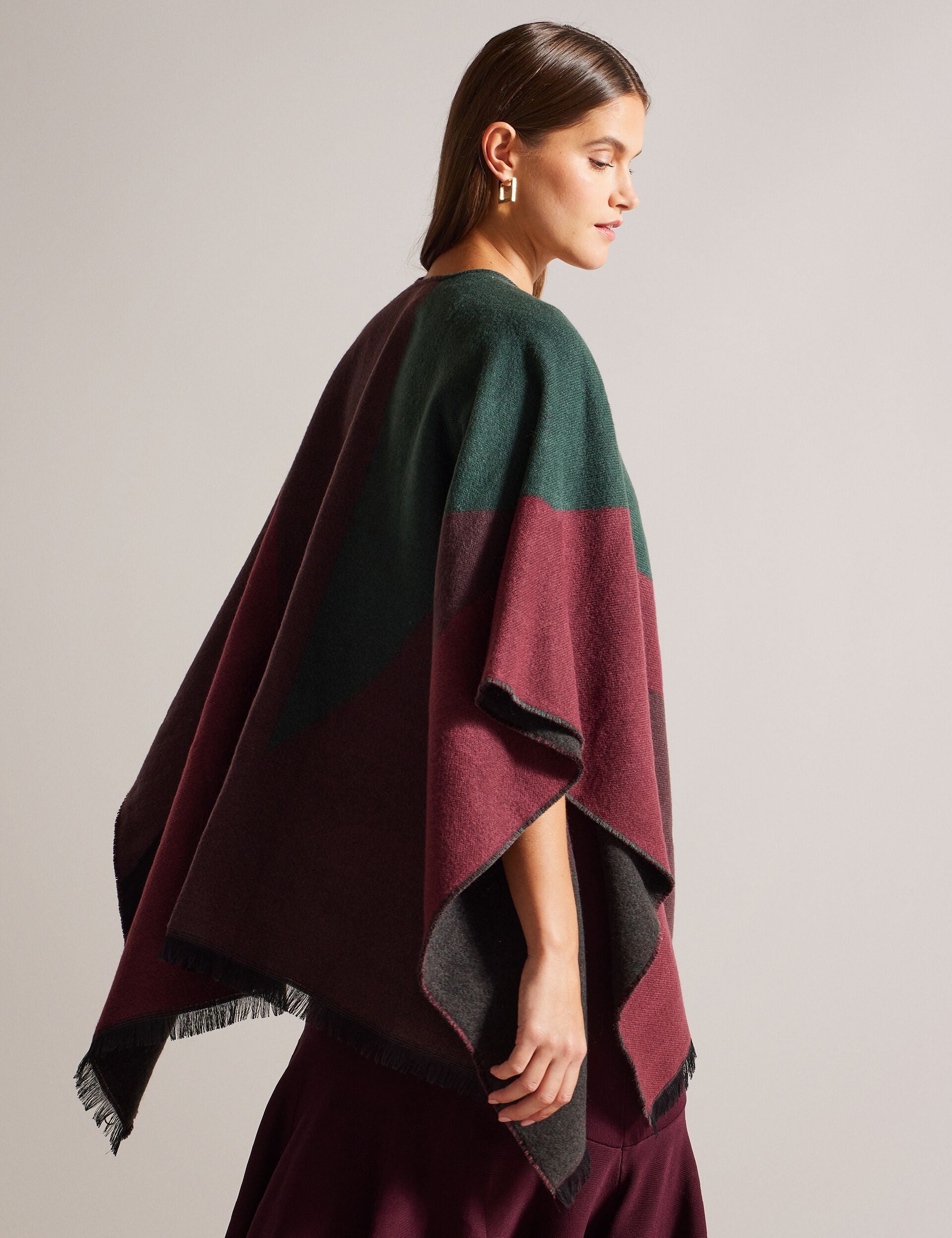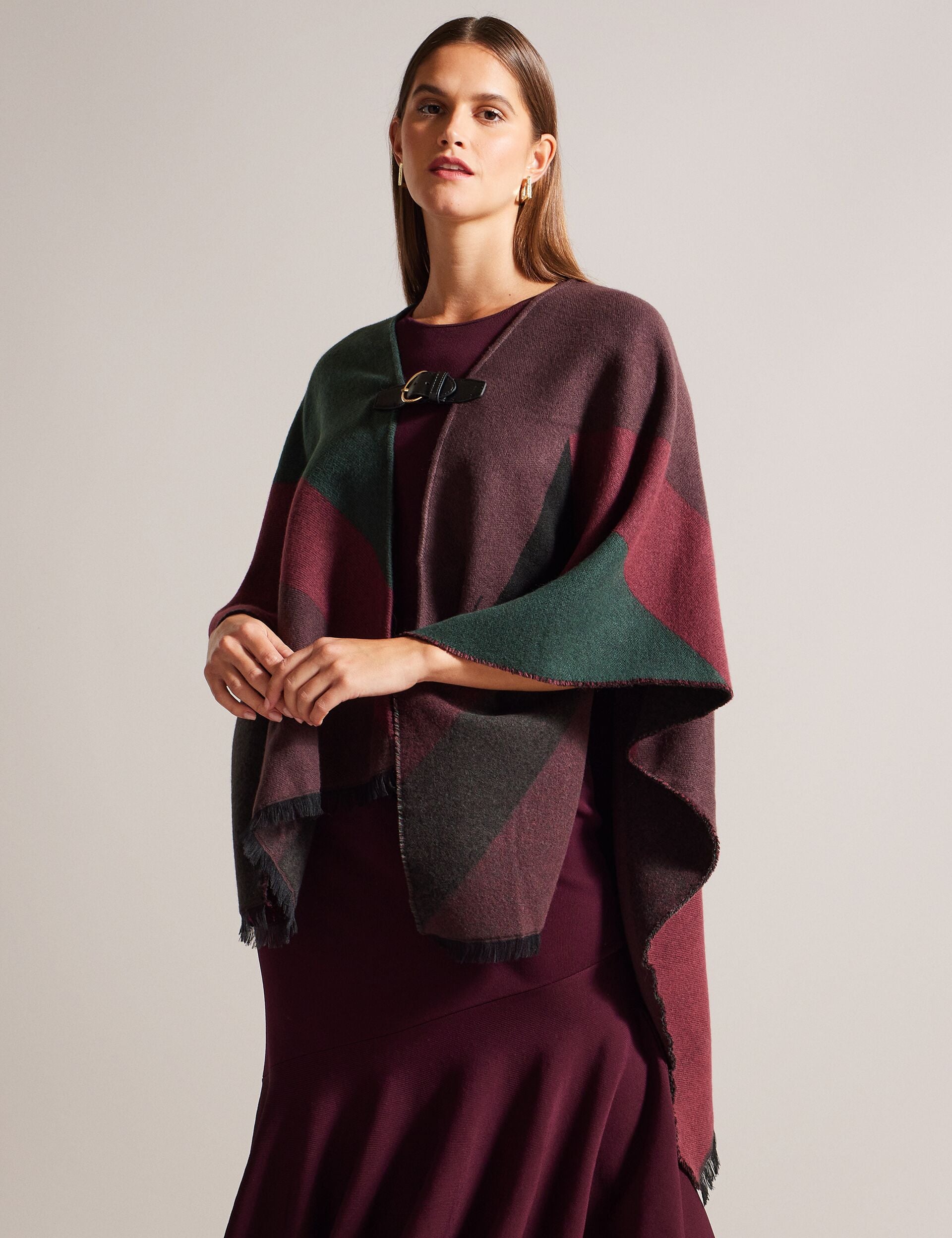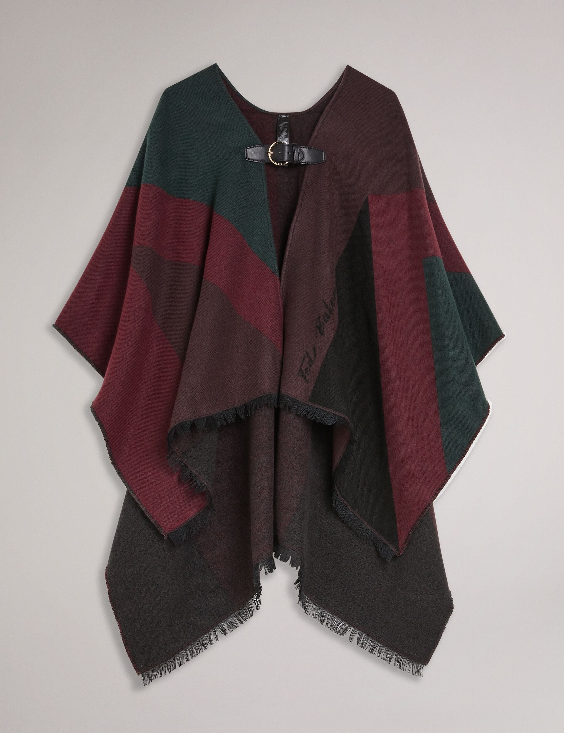Looking For A Stylish Way To Protect Yourself Against The Elements? Meet Suffia. Designed In A Colour Block Pattern With A Fringe Edge And Buckle Fastening Detail This Poncho Is A Stylish And Cosy Addition To Any Outfit.