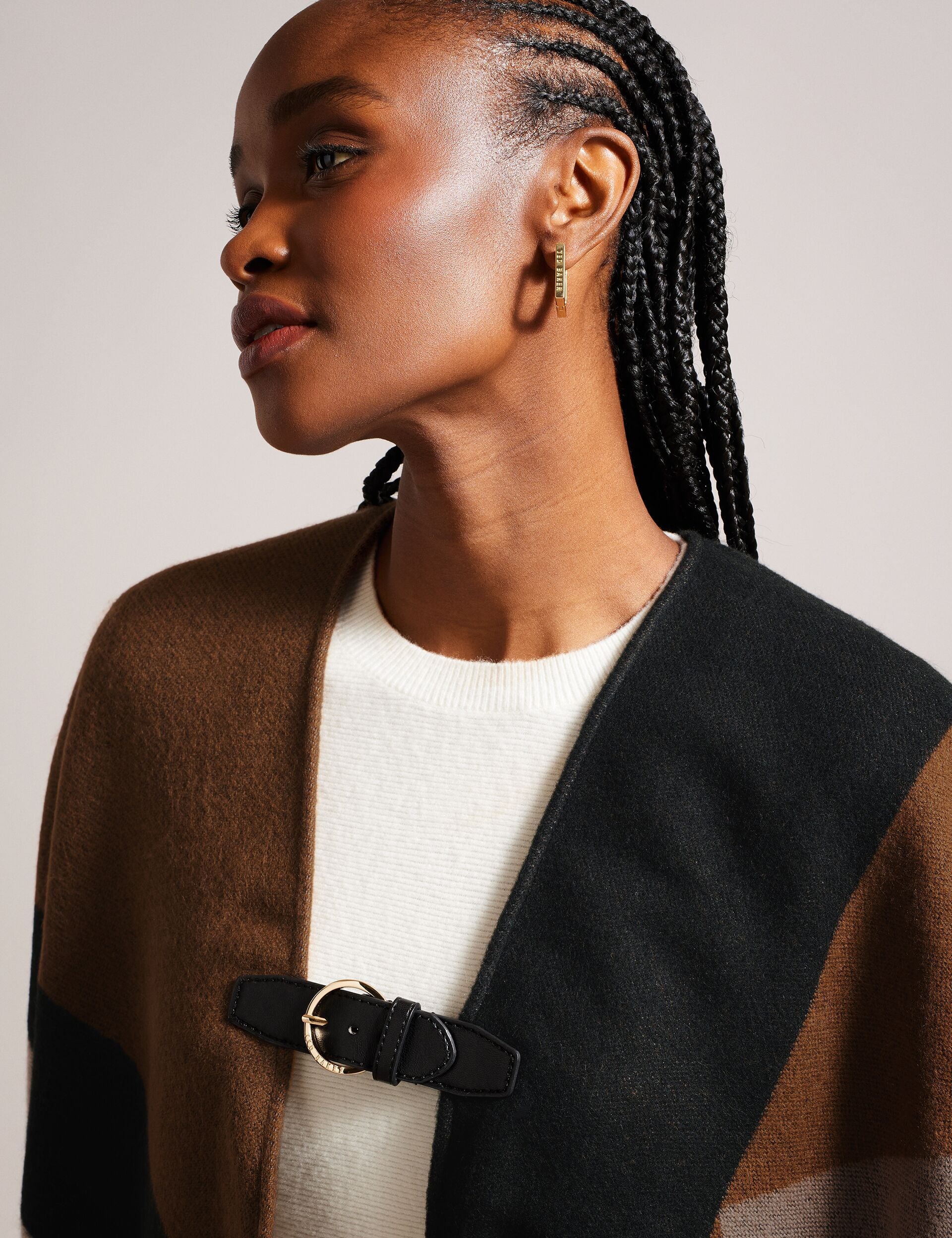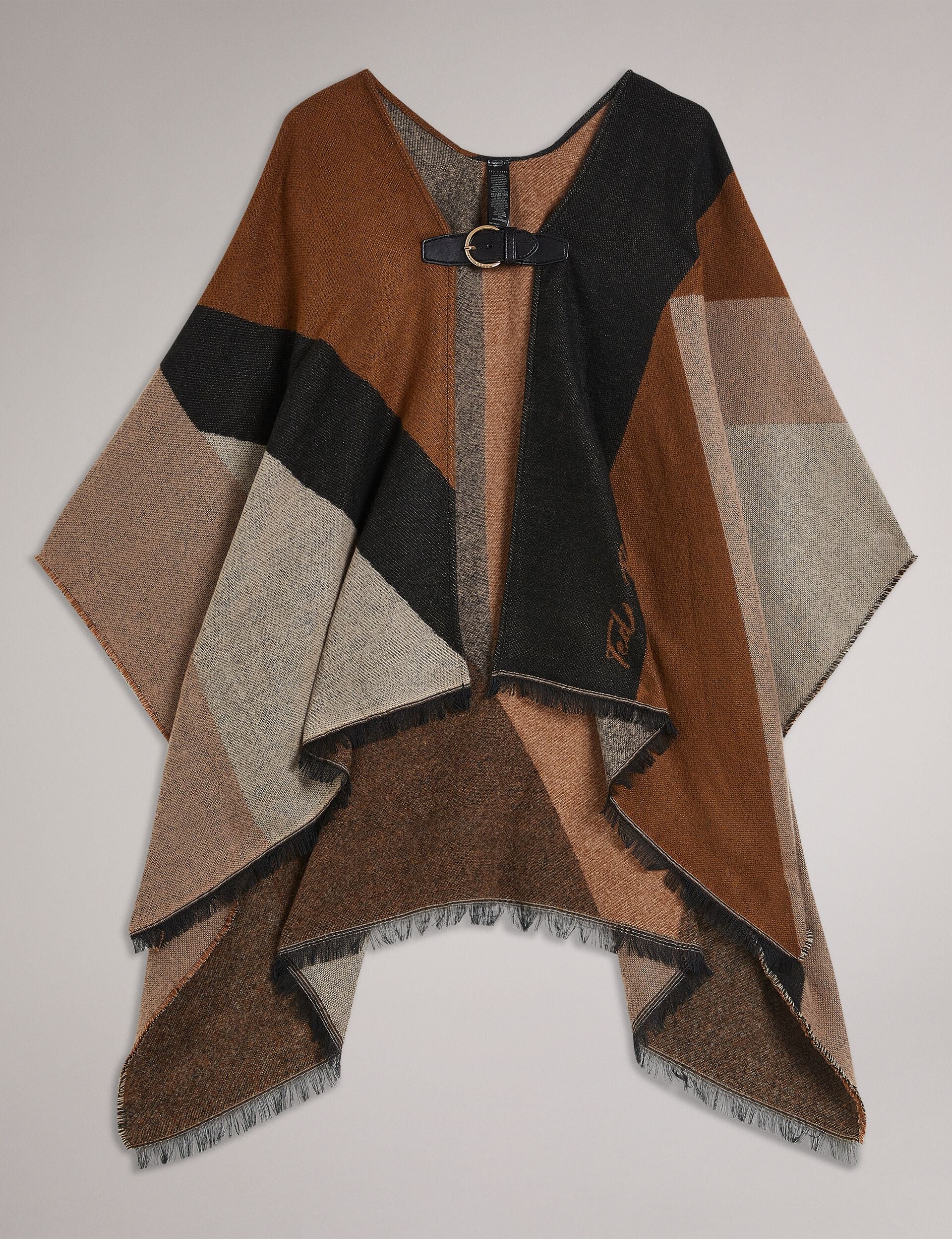 Looking For a Stylish Way to Protect Yourself Against the Elements? Meet Suffia. Designed In a Colour Block Pattern with a Fringe Edge and Buckle Fastening Detail This Poncho Is a Stylish and Cosy Addition to Any Outfit.
