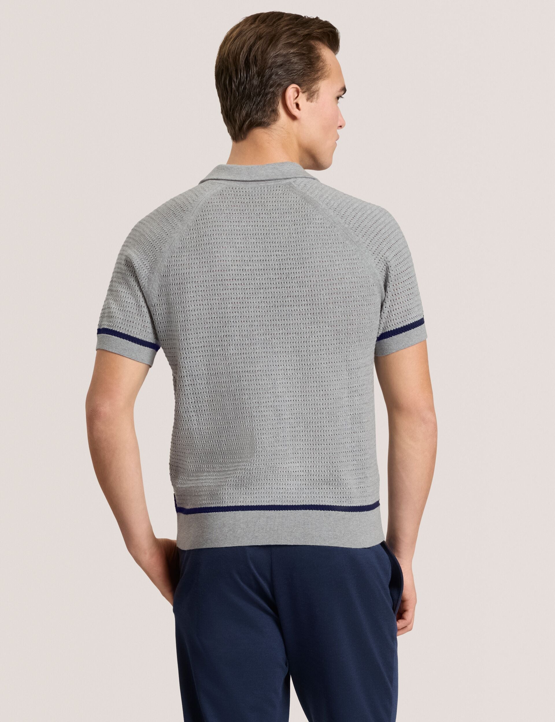 - Distinctive polo collar for a refined look