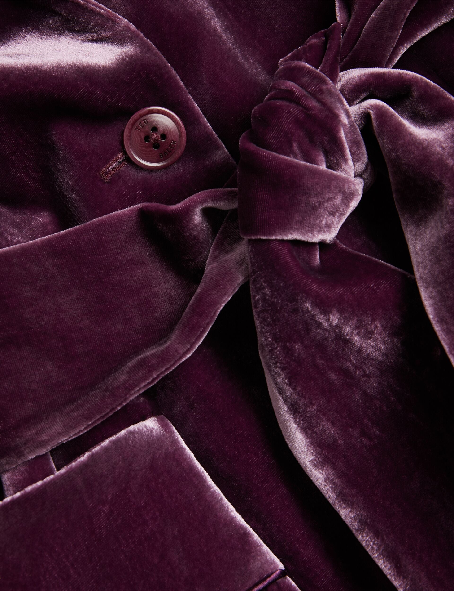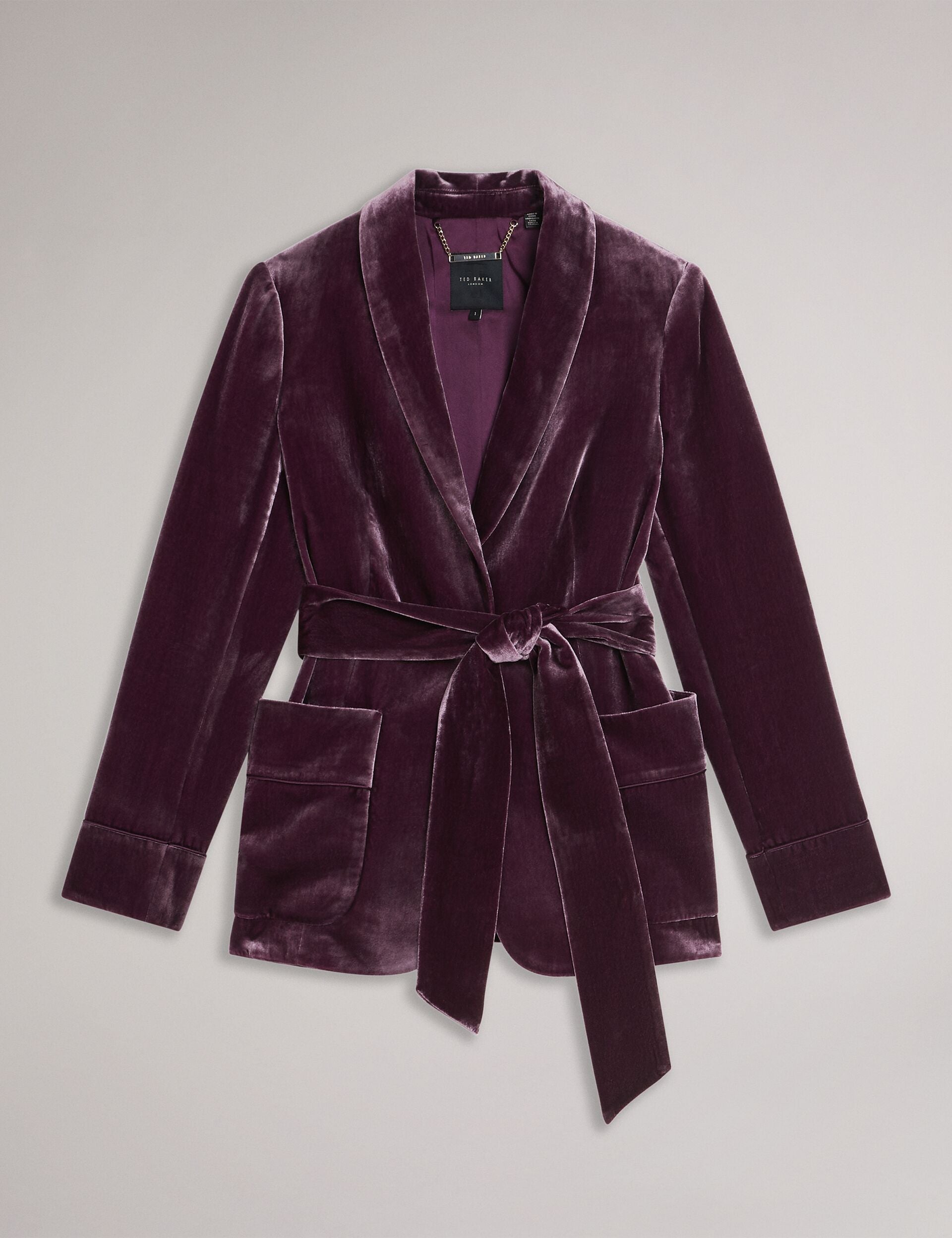 TANSYA is a wardrobe must-have this season. This unique velvet jacket features long sleeves, a shawl collar and self tie belt to accentuate your figure.