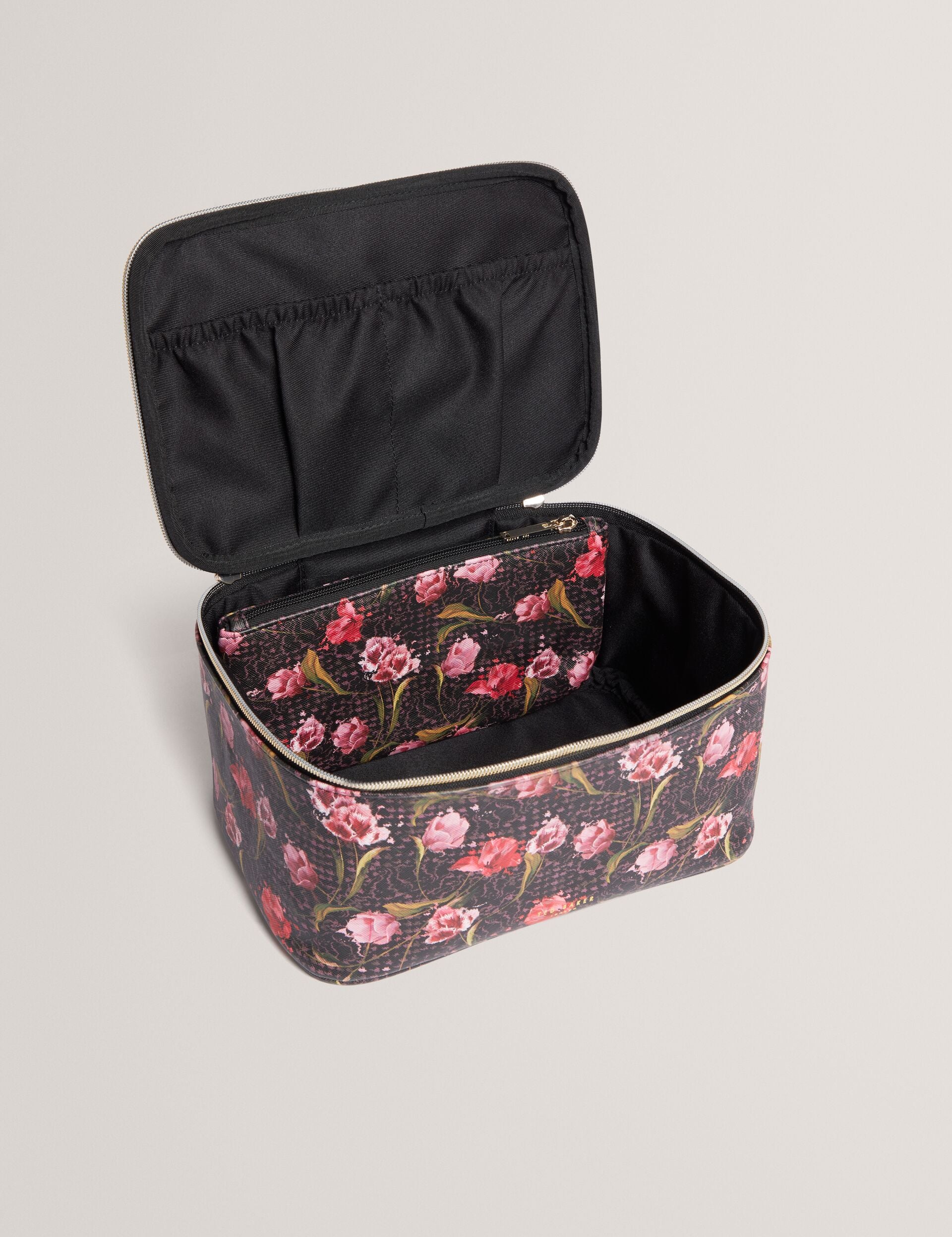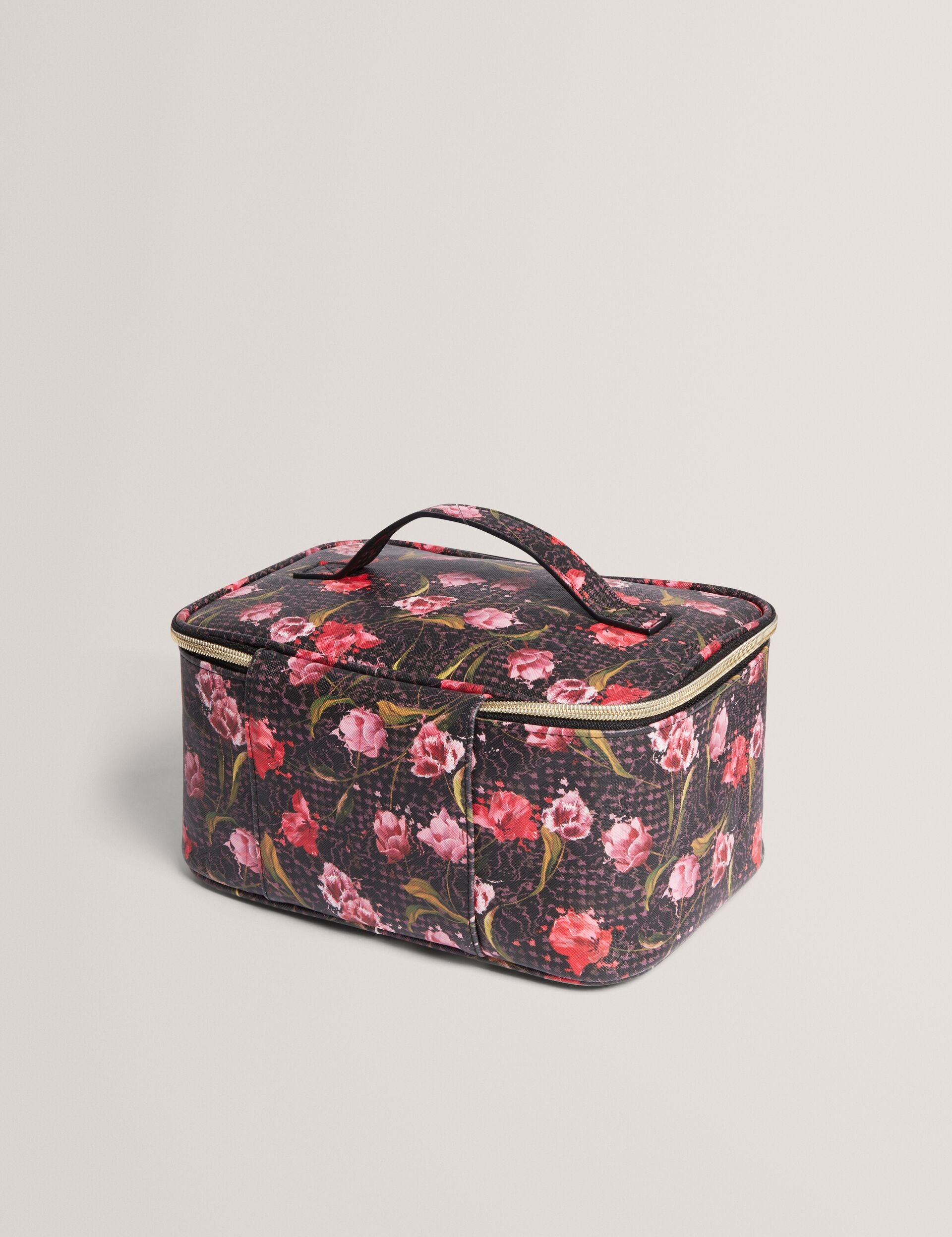 At home or in your suitcase, the TULBY vanity case makes a stylish home for your makeup. Spacious interior features pockets and a zipped pouch for ultimate organisation, wrapped in a faux leather outer that's printed in our floral check design.