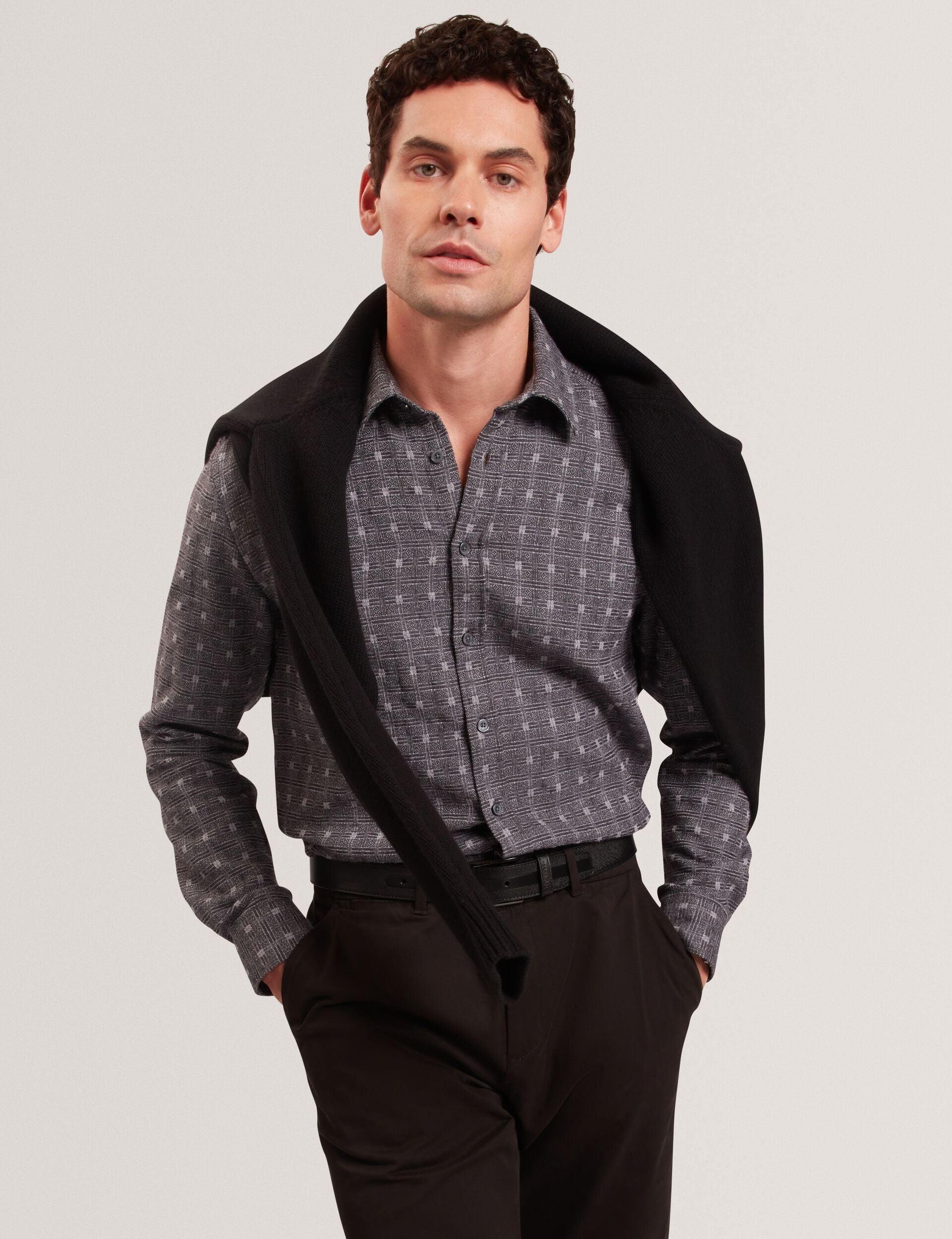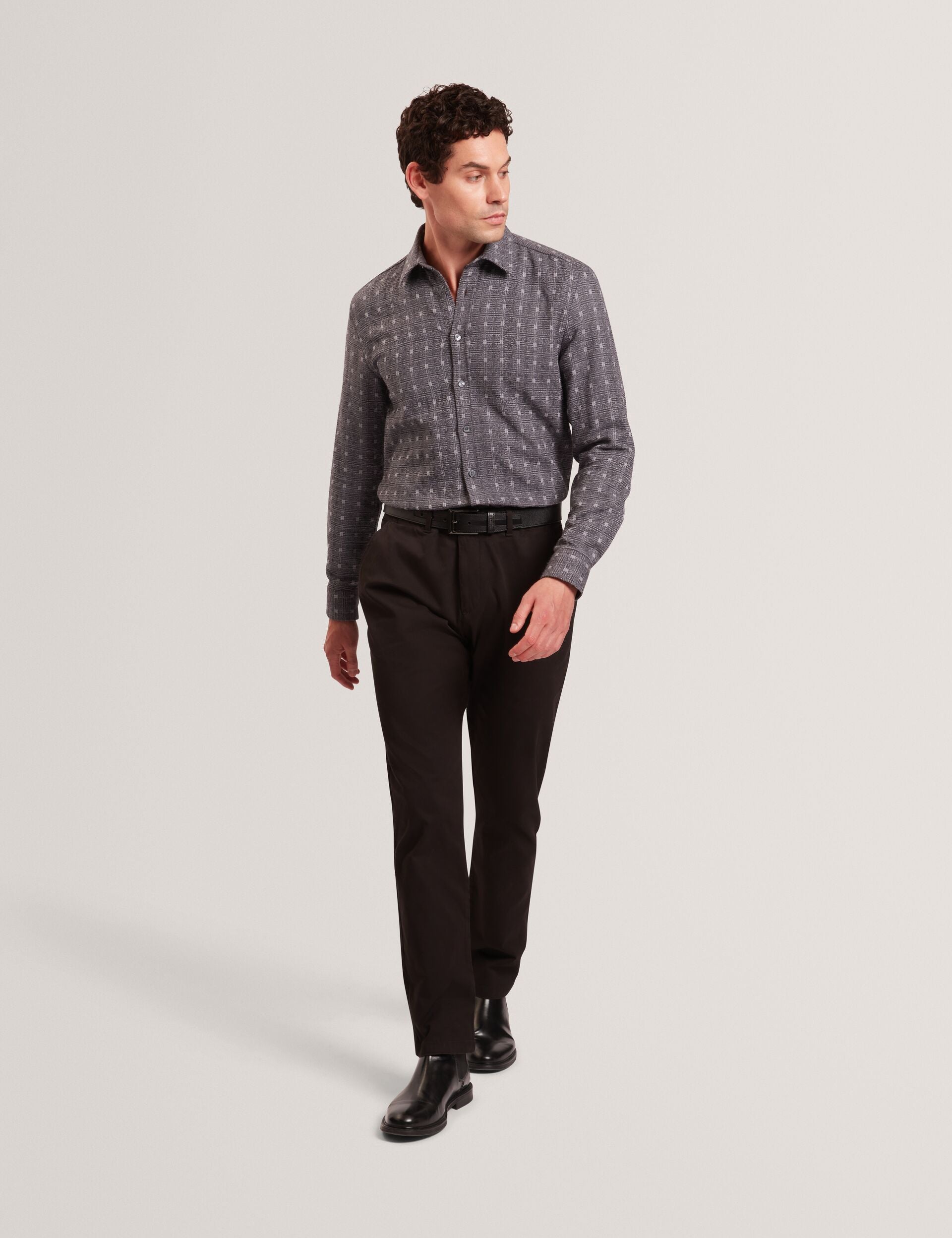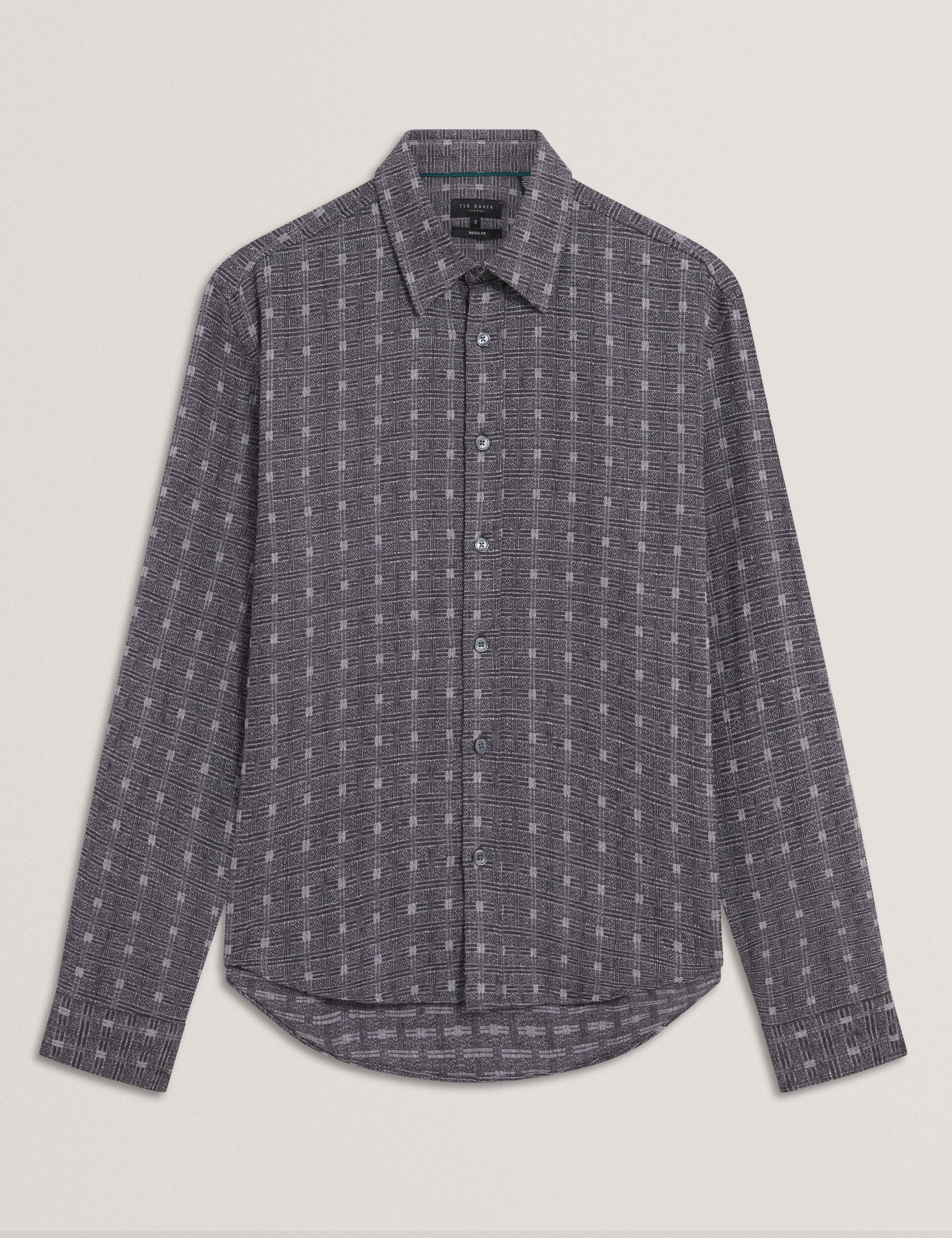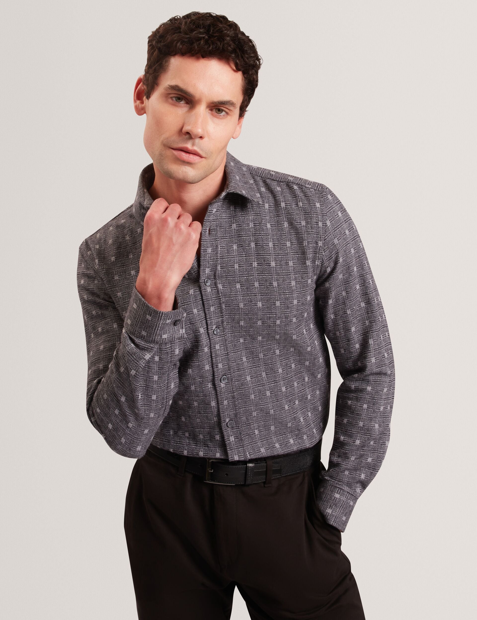Long Sleeve Regular Fit Jacquard Check Shirt