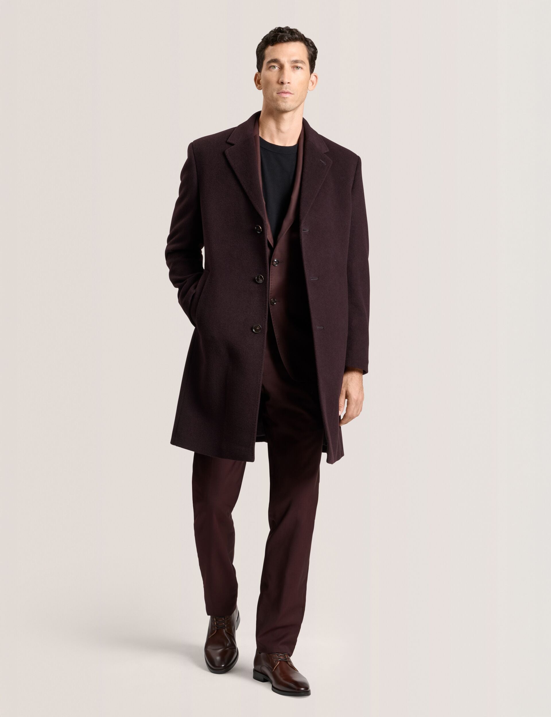 Step into timeless sophistication with the Wystan Overcoat. Crafted from a sumptuous wool-cashmere blend, it drapes beautifully for effortless elegance. Fully lined for comfort, with sleek slash pockets and classic button fastening, it’s designed for crisp mornings, city strolls, or evenings where style matters most.