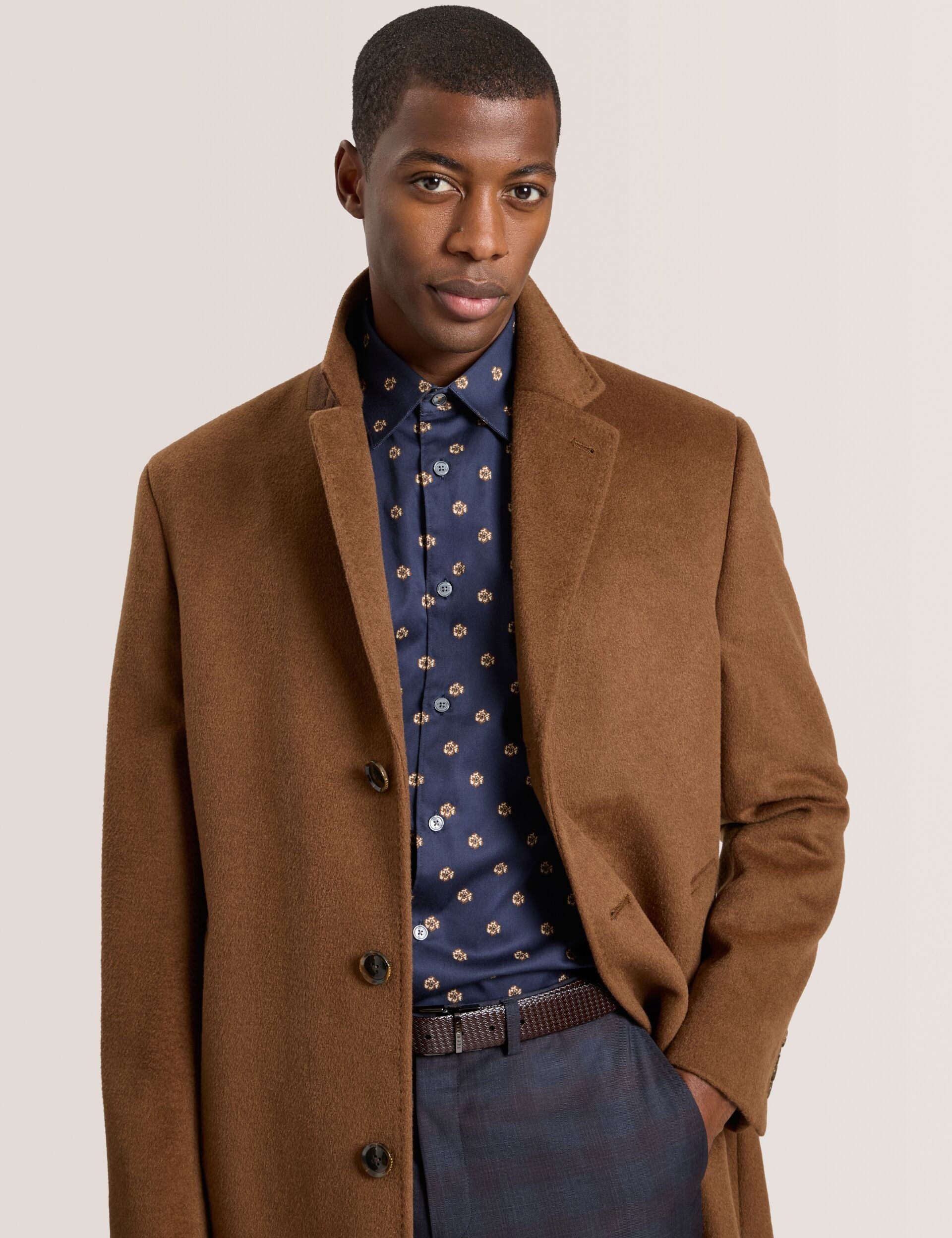 Step into timeless sophistication with the Wystan Overcoat. Crafted from a sumptuous wool-cashmere blend, it drapes beautifully for effortless elegance. Fully lined for comfort, with sleek slash pockets and classic button fastening, it’s designed for crisp mornings, city strolls, or evenings where style matters most.