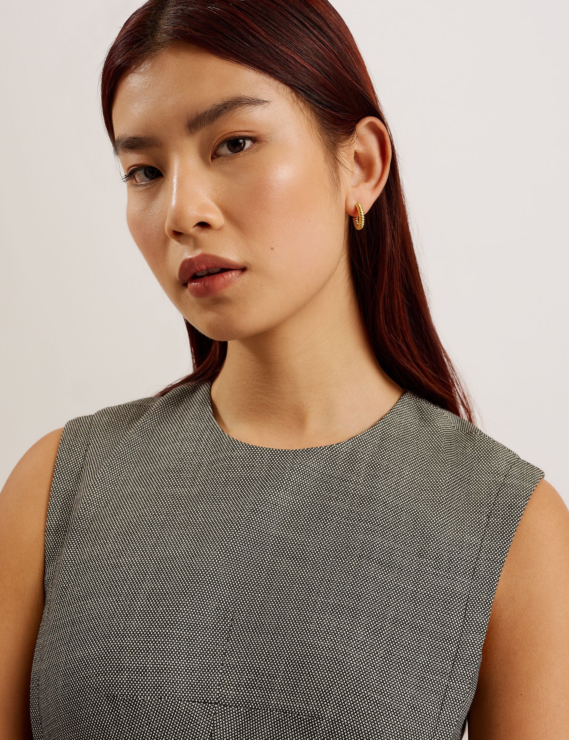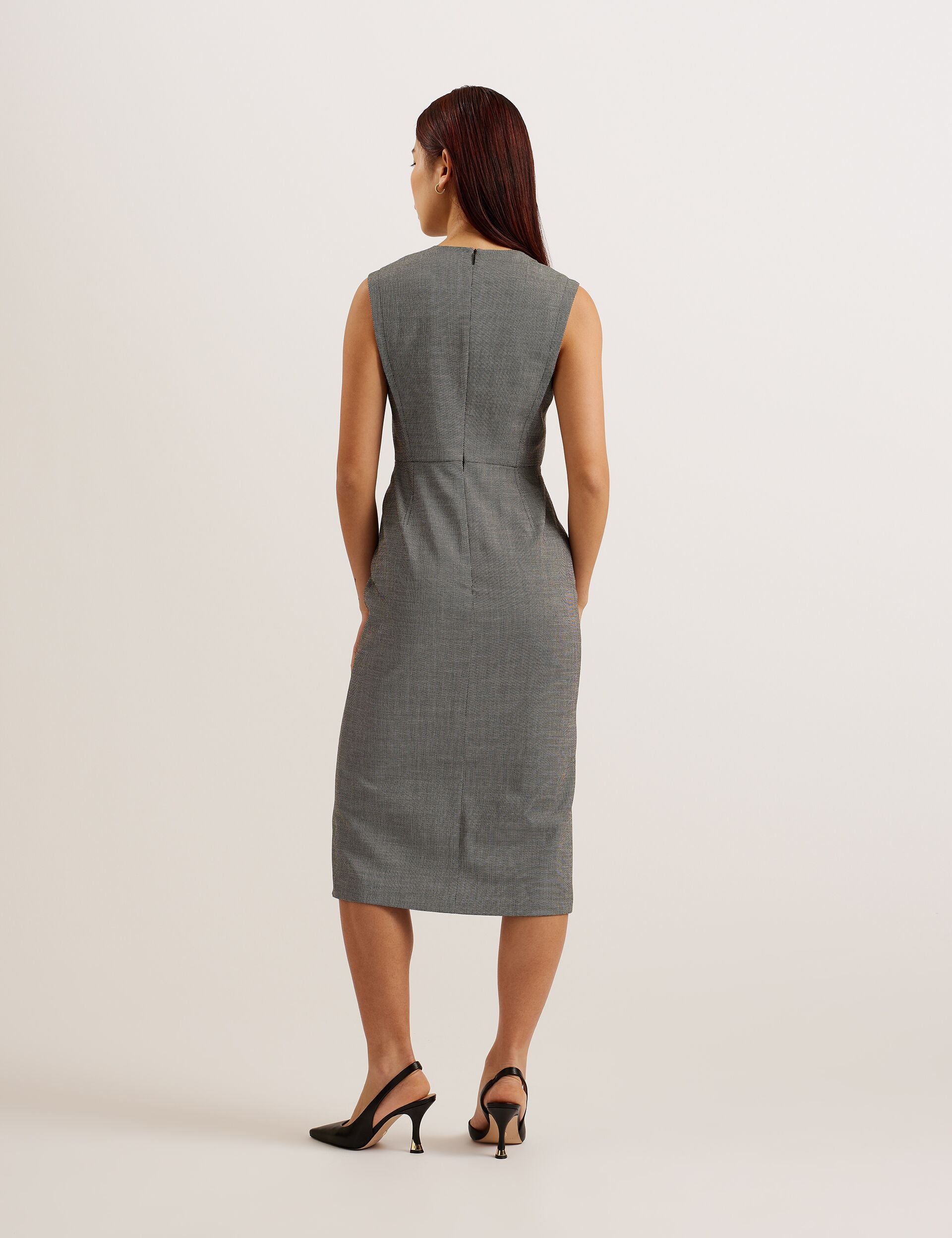 Take the corporate world by storm in this YUTAKAD dress. It boasts a classic tailored look with a midi length and flattering pencil shape, balanced with the modern feel of the wide shoulder design and a split on the front hem. Made with a two tone woven fabric, it brings subtle texture whilst still feeling business appropriate.
