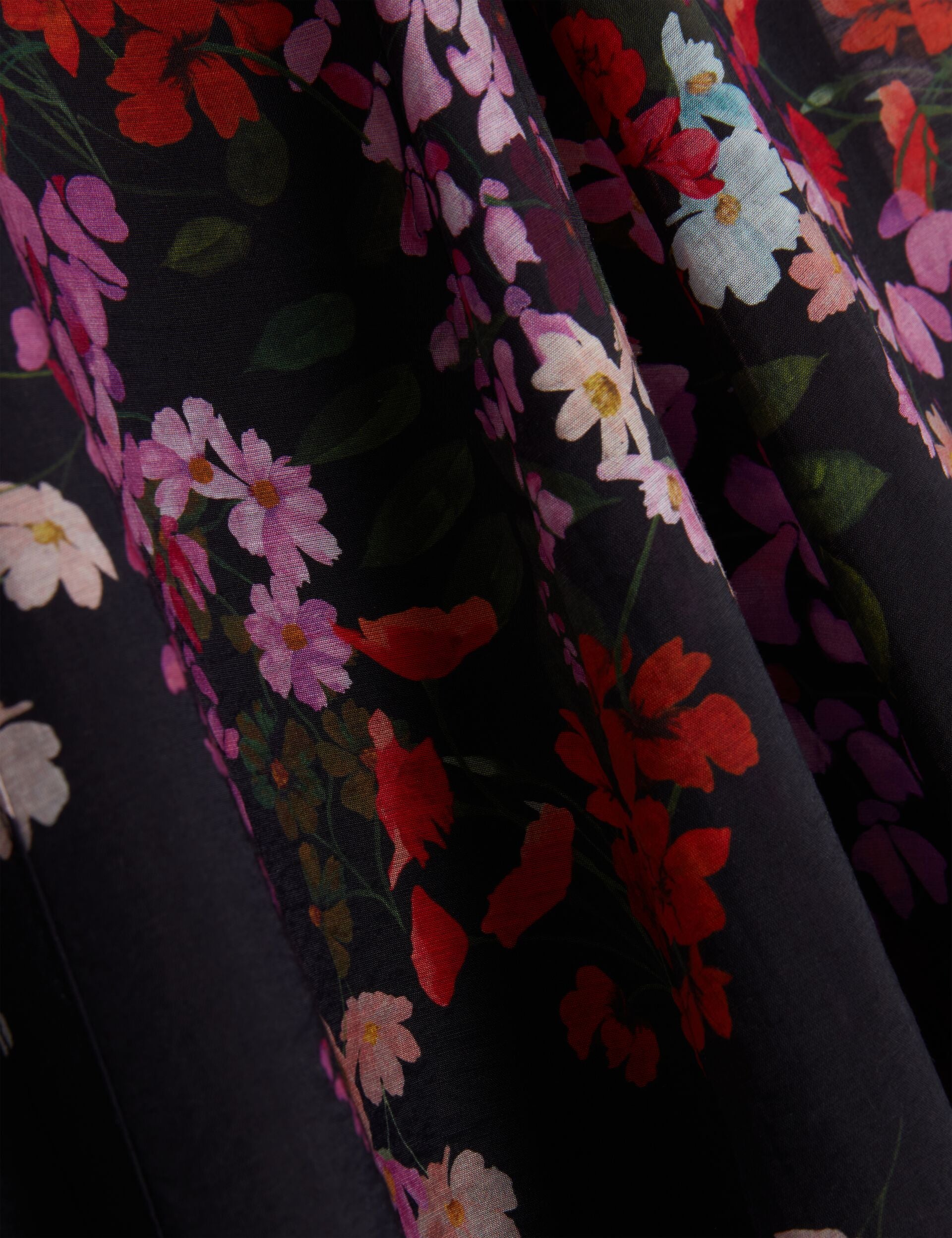 Scattered Floral Puff Sleeve A-Line Maxi Dress