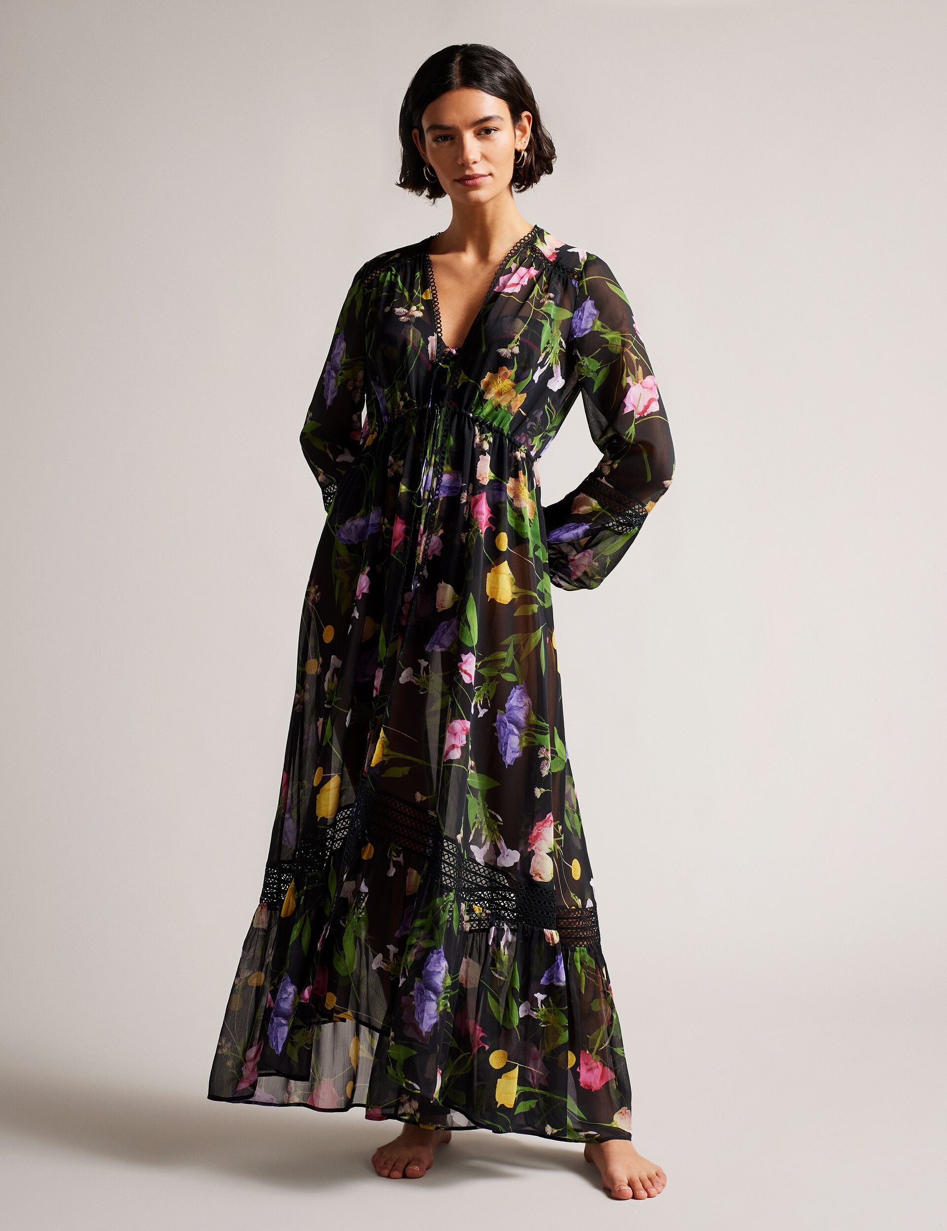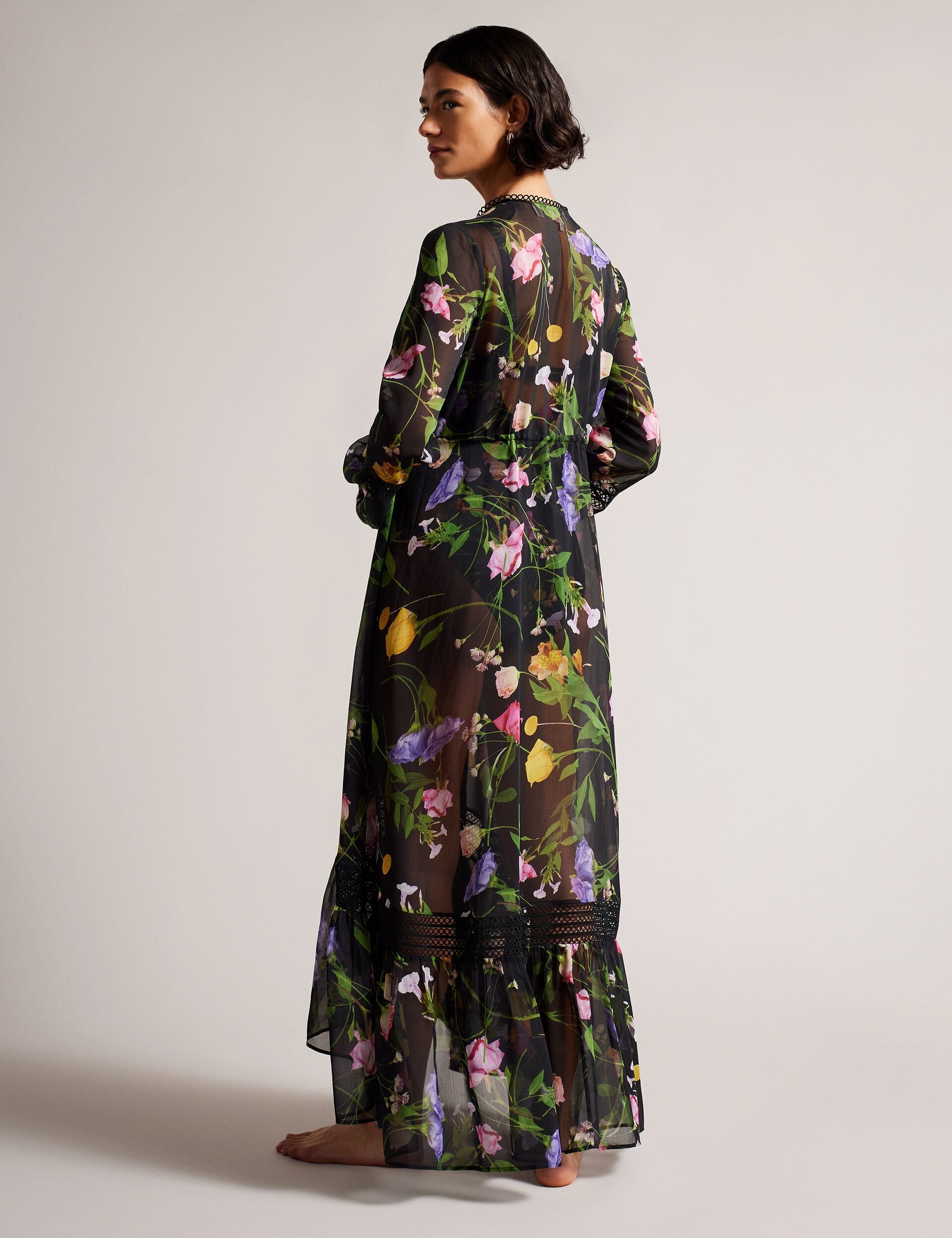 This long-sleeved ZENNIE cover up is perfect for days spent by the pool or beach. We love the scattering of florals on the floaty fabric, and the loop lace trim that adds a subtle touch of femininity.